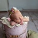 It measures approximately 3" inch wide. You could choose the bow with a delicate nylon band for the smallest of the house or if you prefer a clip.